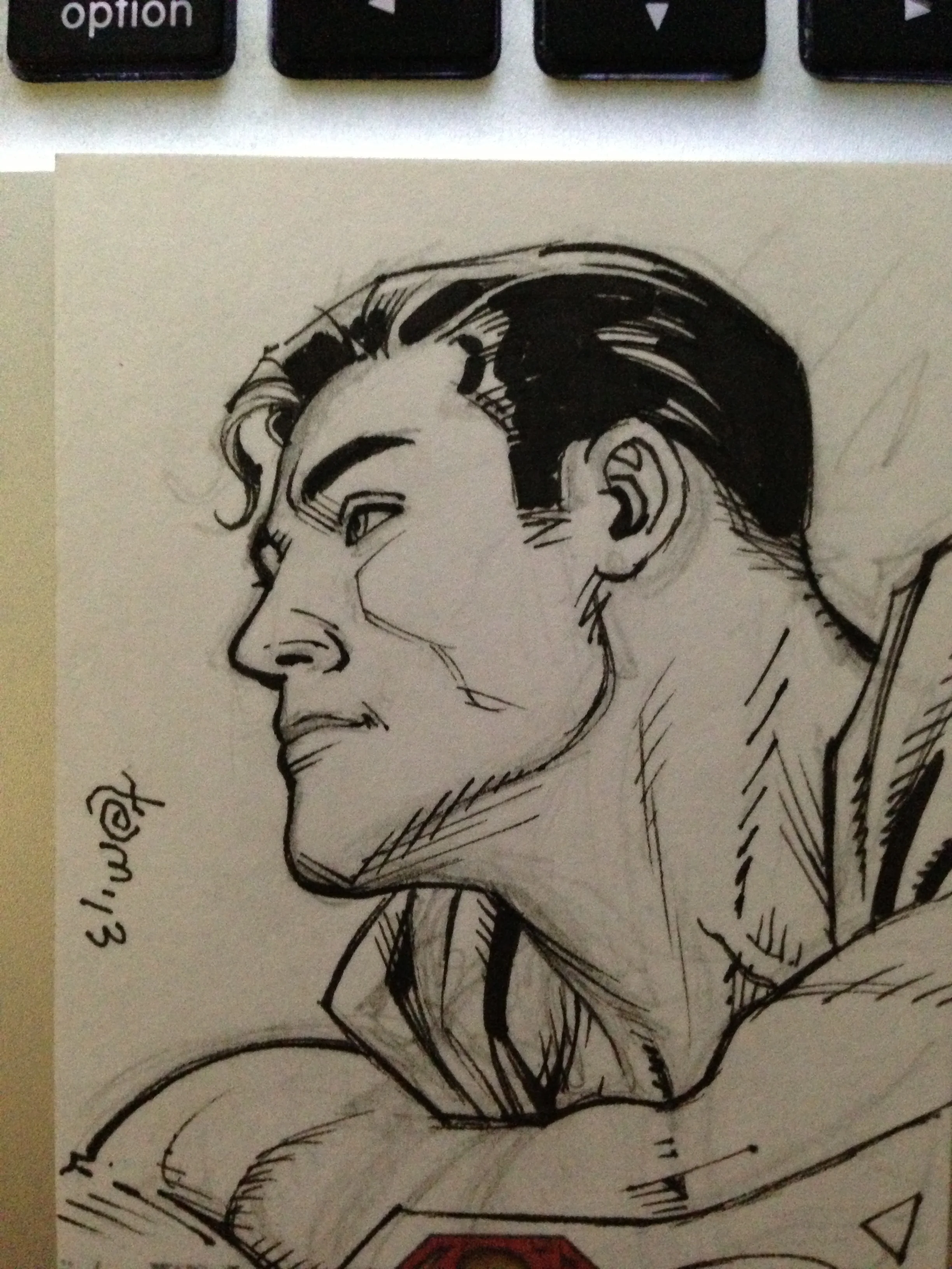 Superman head card sketch for Ryan, winner of another Art Samurai workshop contest.